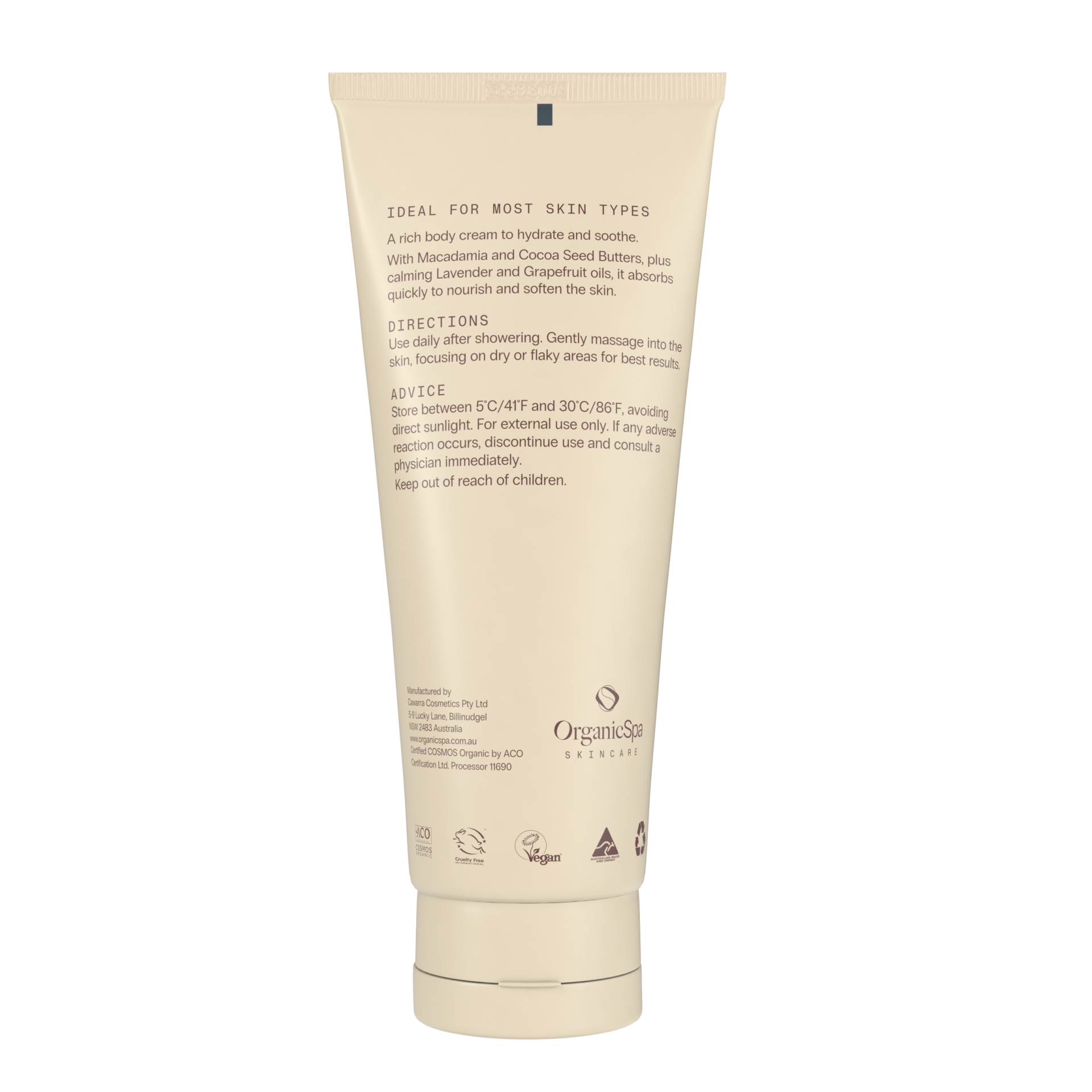 Verrijkt met Macadamia-olie en Cacaoboter en gearomatiseerd met de geur van lavendel en pompelmoes, is deze bodycrème een relaxerende toevoeging aan je dagelijkse badkamerritueel.